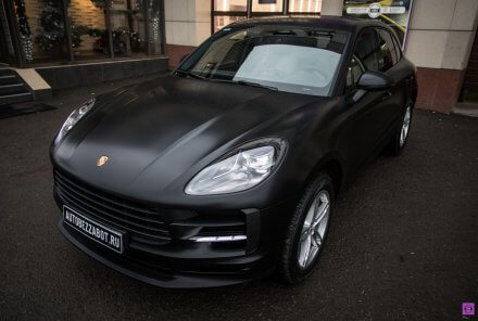 Чёрный Porsche Macan над надежной защитой матового полиуретана LLumar Matt