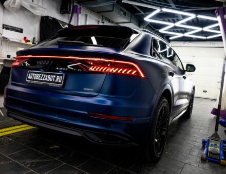 Бронирование фар Audi Q8 Синий фото и видео