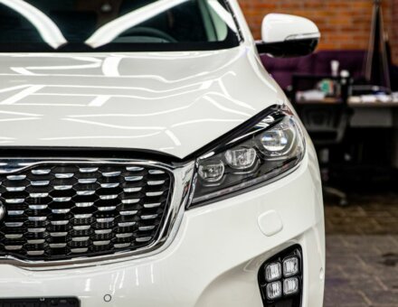 Бронирование фар KIA Sorento Prime Белый фото и видео