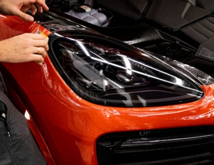 Бронирование фар Porsche Cayenne Оранжевая лава фото и видео