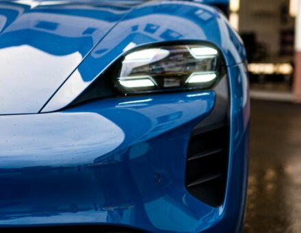 Бронирование фар Porsche Taycan Синий фото и видео