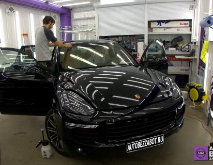 Бронепленка на стекла авто Porsche Cayenne Черный 07.09.17 фото и видео