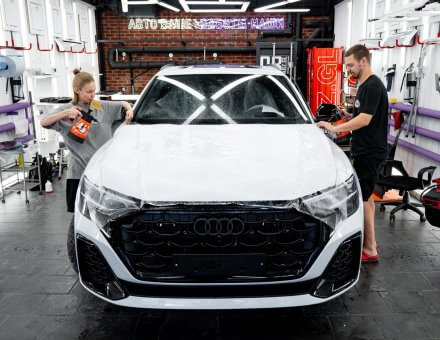 Матовая антигравийная пленка Audi Q8 Белый 14.01.24 фото и видео