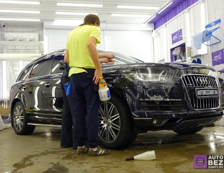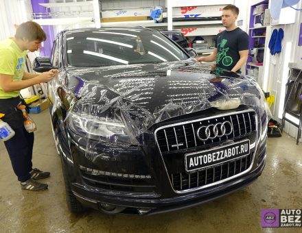 Оклейка антигравийной пленкой Audi Q7 Черный 30.11.17 фото и видео