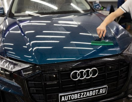 Оклейка антигравийной пленкой Audi Q8 Синий 14.08.19 фото и видео