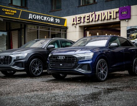 Оклейка антигравийной пленкой Audi Q8 Темно синий 26.06.20 фото и видео
