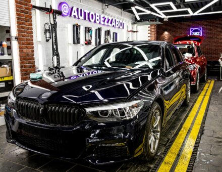Оклейка антигравийной пленкой BMW 5 Черный 07.08.20 фото и видео
