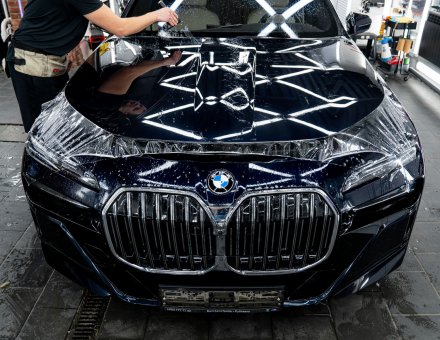 Оклейка антигравийной пленкой BMW 7 Темно синий 11.03.23 фото и видео