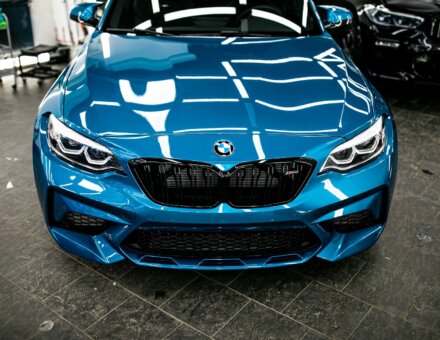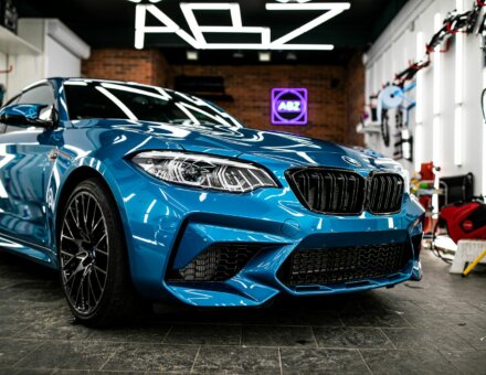 Оклейка антигравийной пленкой BMW M2 Competition Laguna Seca Blue фото и видео