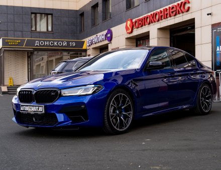 Оклейка антигравийной пленкой BMW M5 Competition Синий 14.09.24 фото и видео