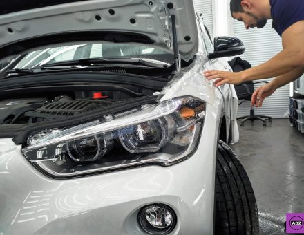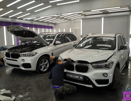 Оклейка антигравийной пленкой BMW X1 Белый фото и видео