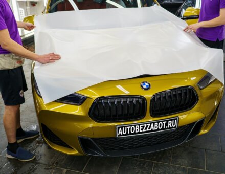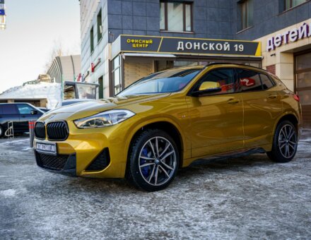Оклейка антигравийной пленкой BMW X2 Золотистый Гальваник фото и видео