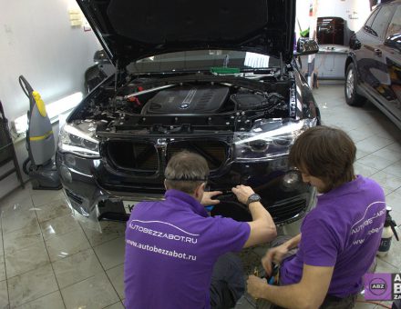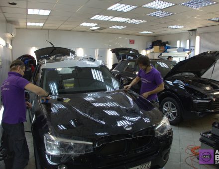 Оклейка антигравийной пленкой BMW X3 Черный 28.01.17 фото и видео