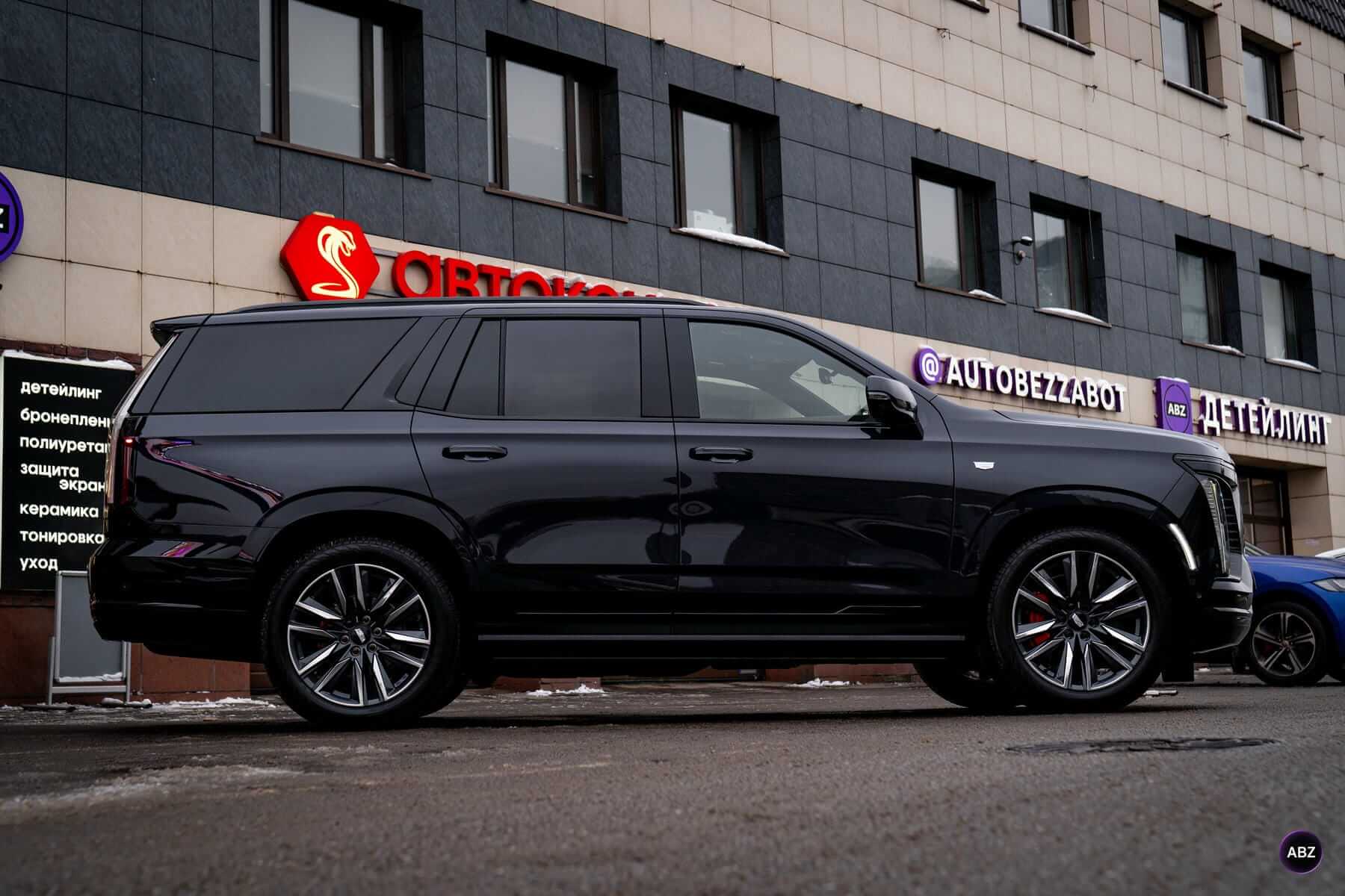 Оклейка антигравийной пленкой Cadillac Escalade Черный 15.01.26 фото и видео