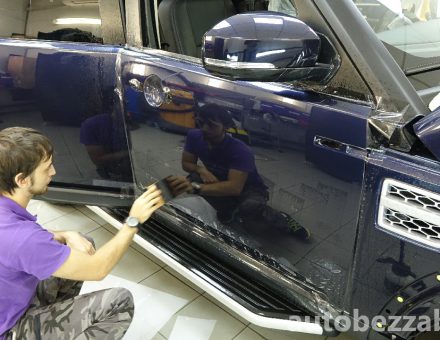 Оклейка антигравийной пленкой Land Rover Discovery Темно синий фото и видео