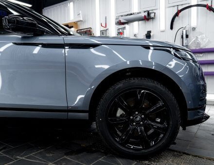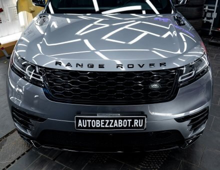 Оклейка антигравийной пленкой Range Rover Velar Серо голубой 20.11.24 фото и видео