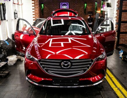 Оклейка антигравийной пленкой Mazda CX-9 Красный фото и видео