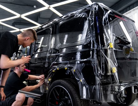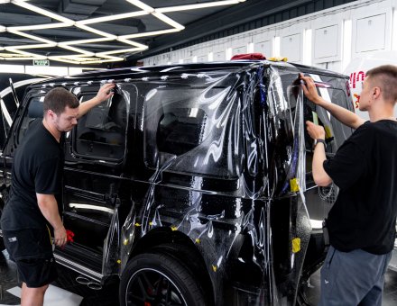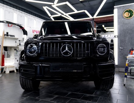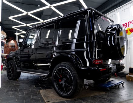 Оклейка антигравийной пленкой Mercedes-Benz G63 Черный 17.04.24 фото и видео