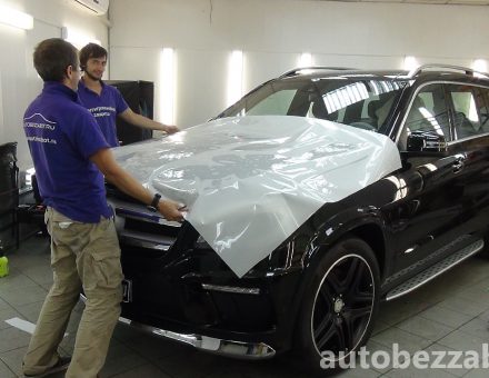 Оклейка антигравийной пленкой Mercedes Benz GL Class Черный фото и видео