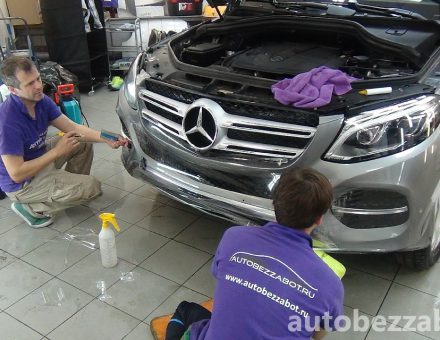 Оклейка антигравийной пленкой Mercedes Benz GLE Class Металлик фото и видео