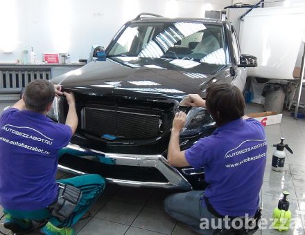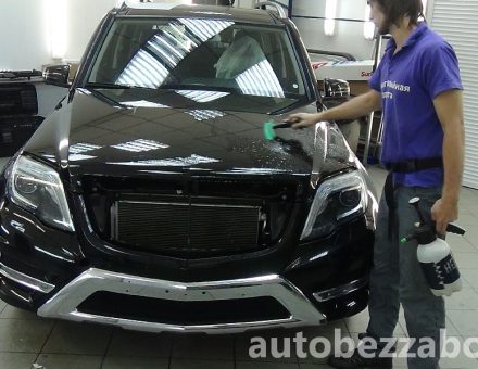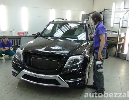 Оклейка антигравийной пленкой Mercedes Benz GLK Class Черный 25.10.15 фото и видео