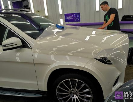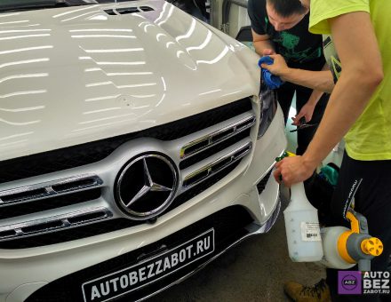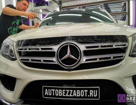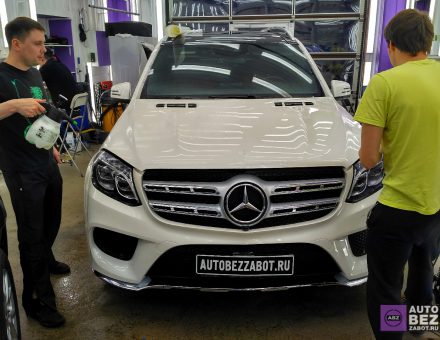 Оклейка антигравийной пленкой Mercedes Benz GLS 350d Белый фото и видео