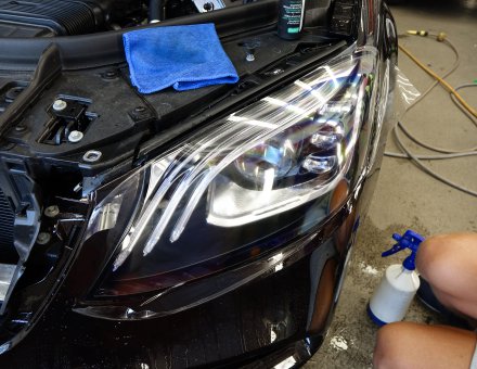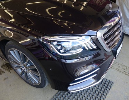Оклейка антигравийной пленкой Mercedes-Benz S Class Черный 11.06.19 фото и видео