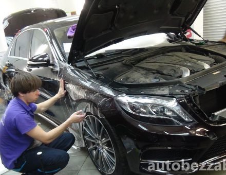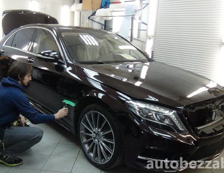 Оклейка антигравийной пленкой Mercedes Benz S Classe Черный 21.04.16 фото и видео