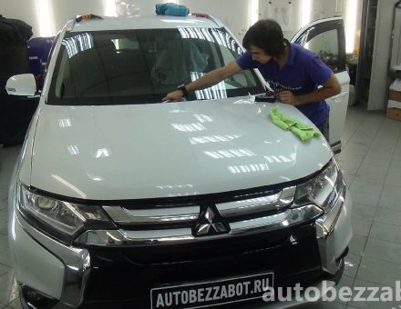 Оклейка антигравийной пленкой Mitsubishi Outlander Белый фото и видео