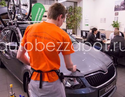 Оклейка антигравийной пленкой Skoda Octavia Металлик 13.01.18 фото и видео