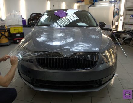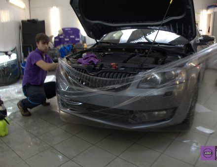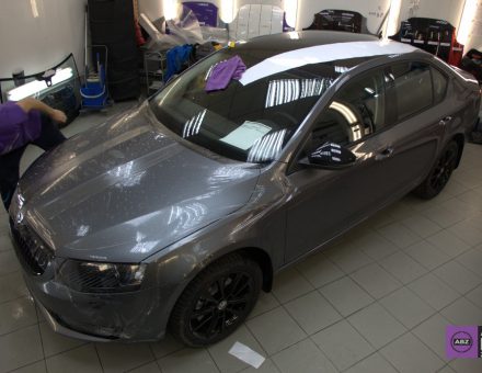 Оклейка антигравийной пленкой Skoda Octavia Металлик 12.12.16 фото и видео