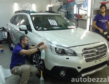 Оклейка антигравийной пленкой Subaru Outback Белый фото и видео