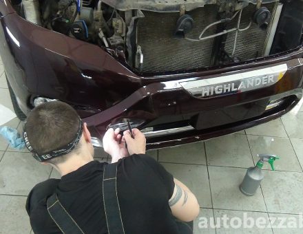 Оклейка антигравийной пленкой Toyota Highlander Темно вишневый фото и видео