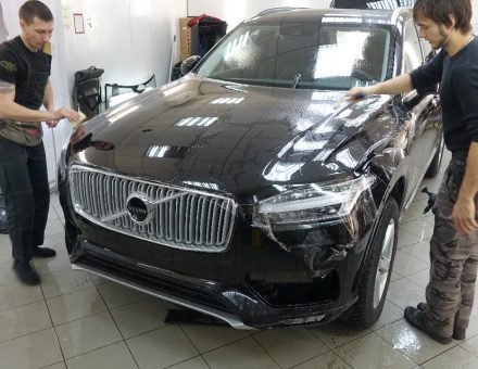 Оклейка антигравийной пленкой Volvo XC90 Черный 12.11.16 фото и видео