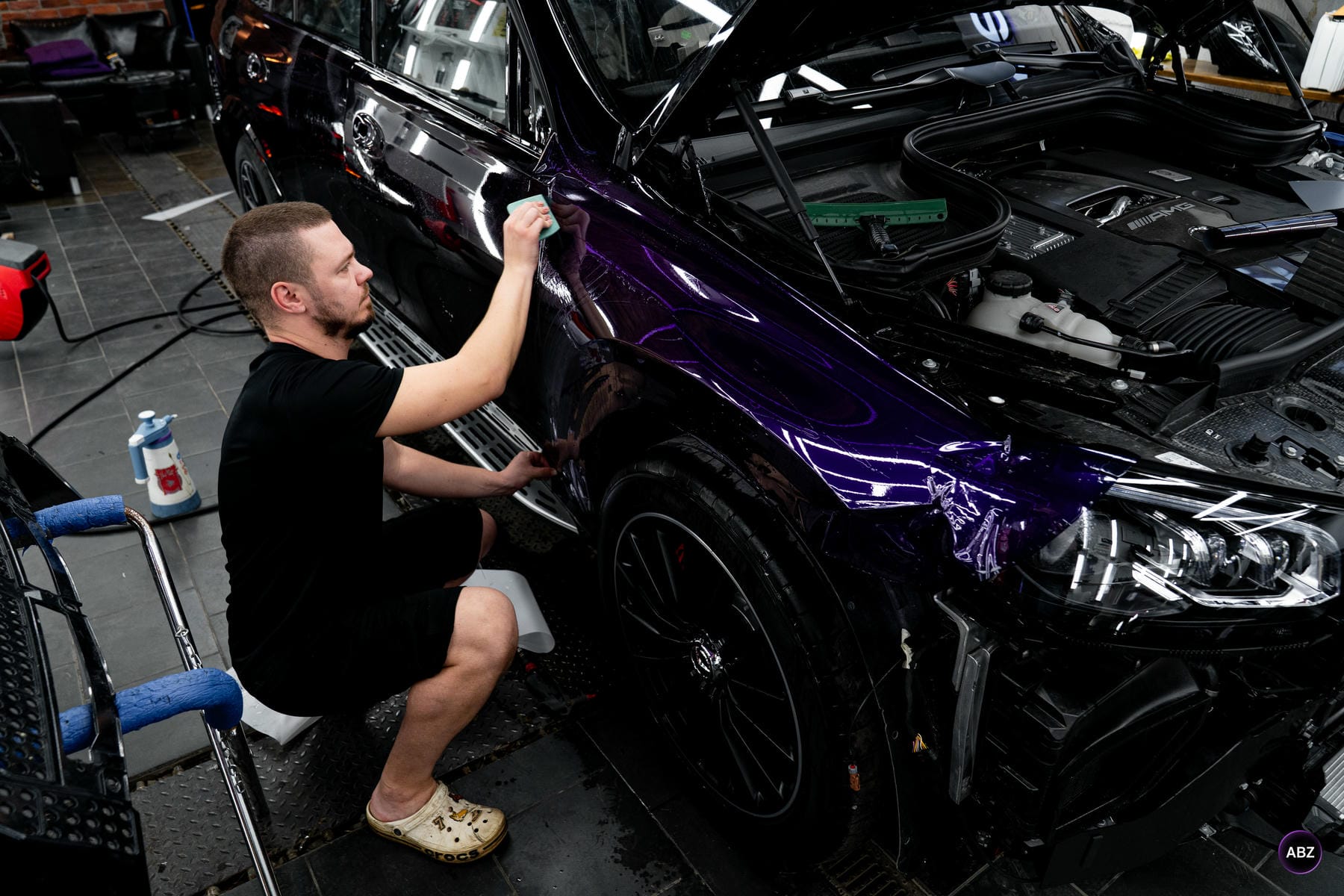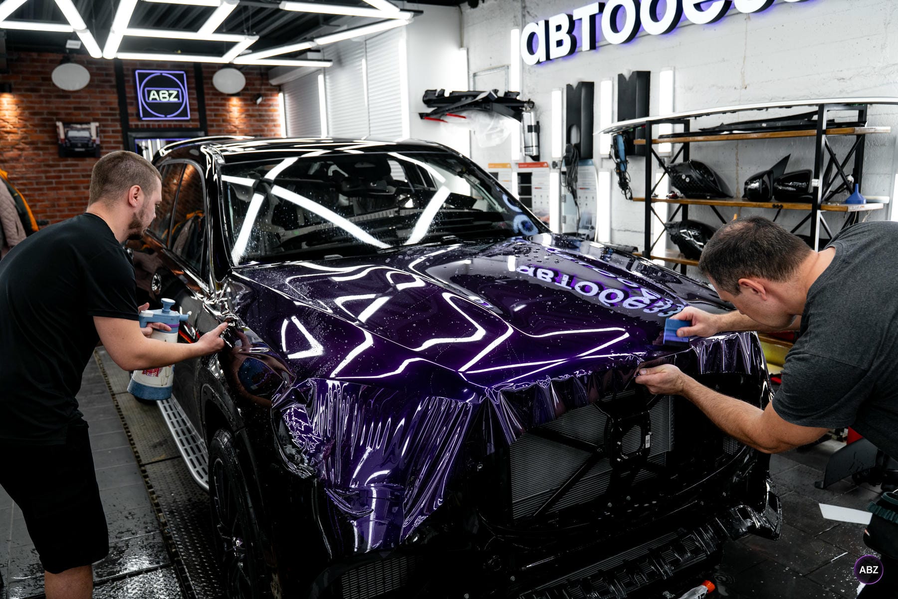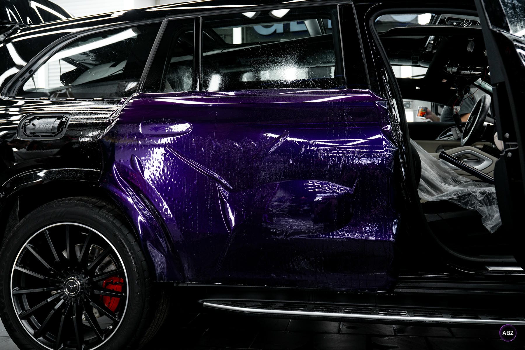Оклейка цветной пленкой Mercedes-Benz GLS Super Purple 01.04.26 фото и видео