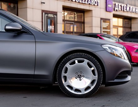 Оклейка цветной пленкой Mercedes-Benz Maybach Lead Ink Grey 16.03.25 фото и видео