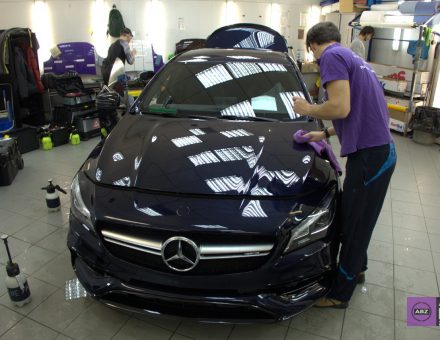 Покрытие нанокерамикой Mercedes Benz CLA45 AMG Черный фото и видео