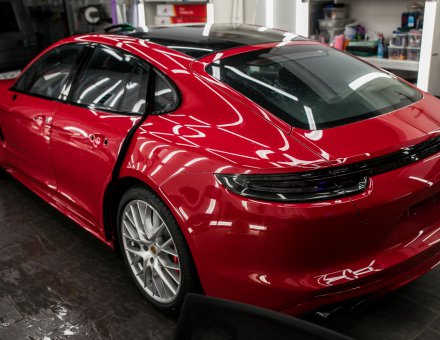 Покрытие нанокерамикой Porsche Panamera Красный фото и видео