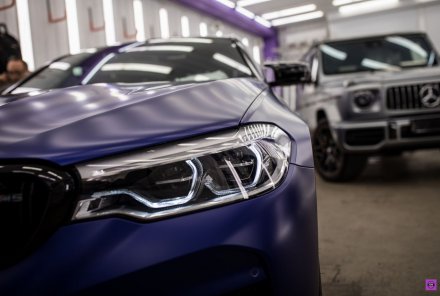 Синий BMW M5 Competition в матовом SunTek